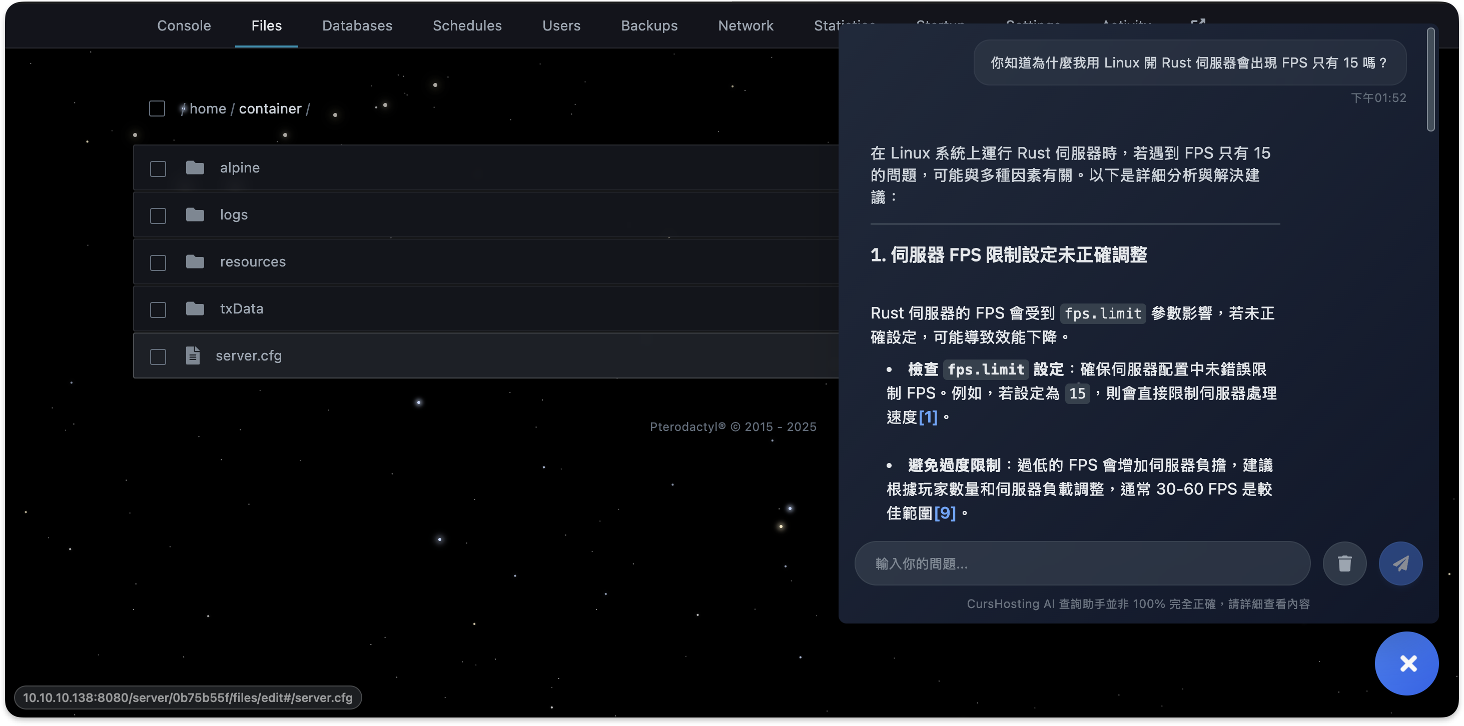 修復或維護伺服器時,若發生錯誤或改錯不知如何進行下一步的動作,右下角的 AI 搜尋助手會盡可能地幫助您。